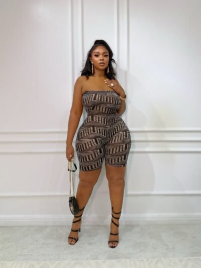 GRID GIRL STRAPLESS ROMPER
