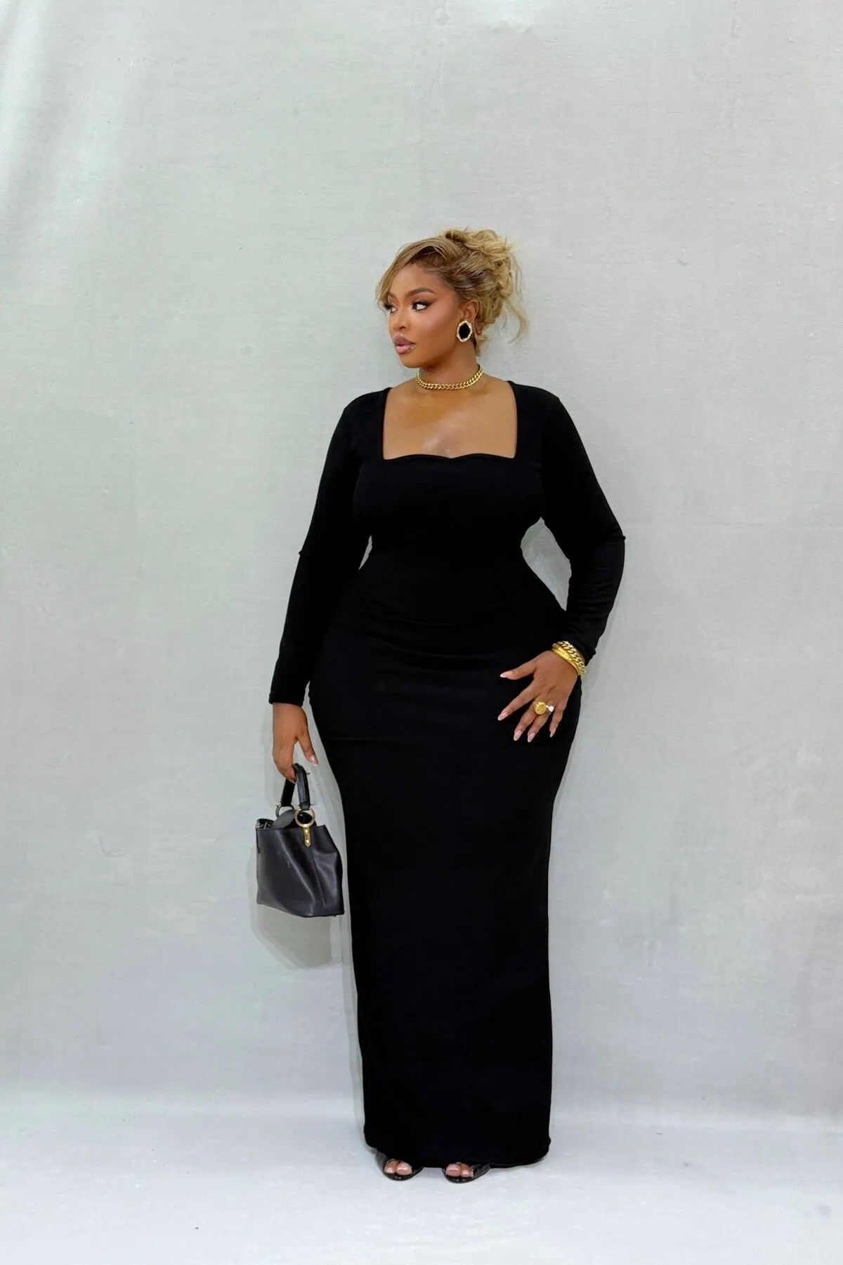 Botega Black Square Neck Dress